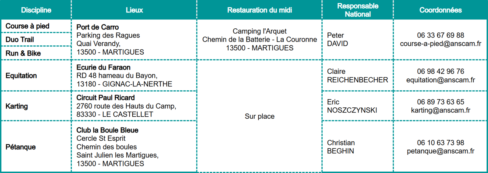 L’ANSCAM vous propose de participer aux Championnats des Sports à l'extérieur, qui se dérouleront du 11 au 14 juin 2026 à Martigues, au cœur d’un territoire ensoleillé, convivial et résolument tourné vers le sport et la fête.
